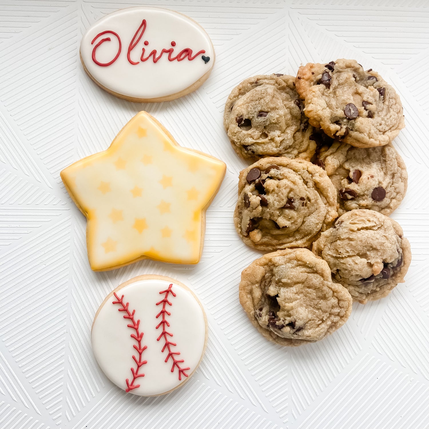Campus smiles, delivered in a flash. Send your college student a taste of home with a half-dozen chocolate chip cookies, 3 decorated sugar cookies, and a note from you! Three sugar cookie designs include their name, heart, and your choice.